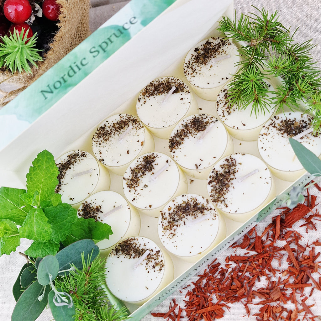 Nordic Spruce Scented Soy Wax Tea Light Candles Gift Box | 12 Tealight Candles Gift Set